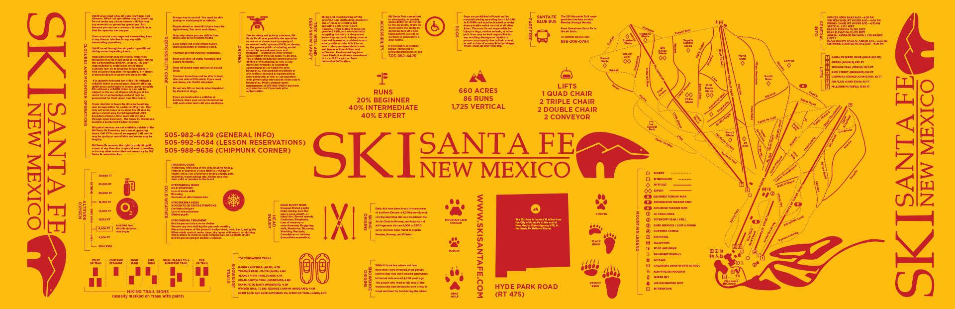 The SmartScarf SKI Companion is a custom large 24”x72” scarf, the perfect piece of gear for any ski resort to offer their guests. The scarf content includes trail maps, rules, critical numbers, history, first aid, safety tips and much more.